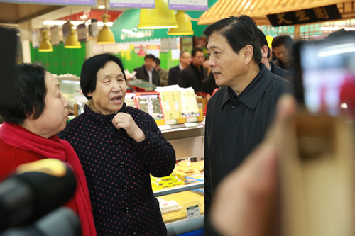 本報訊 每年元旦及春節(jié)都是市民消費(fèi)的重要節(jié)點(diǎn),作為我省零售業(yè)巨擘——甘肅國芳工貿(mào)集團(tuán)為迎接雙節(jié),多方組織貨源,豐富促銷活動,為蘭州市民節(jié)日生活增添色彩。近日,省委副書記、省長劉偉平一行前往甘肅國芳工貿(mào)集團(tuán)下屬國芳綜超檢查節(jié)日期間食品安全保障工作,對企業(yè)工作給予肯定。