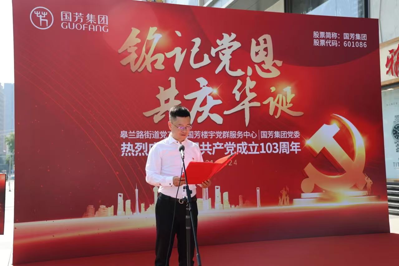 為慶祝偉大的中國共產黨建黨103周年,進一步貫徹落實黨的二十大精神和習近平總書記關于黨紀條例學習教育的重要講話和指示精神,豐富黨員和員工文化生活,在七一建黨節(jié)即將來臨之際,國芳集團黨委協(xié)同皋蘭路街道黨工委、國芳樓宇黨群服務中心入駐企業(yè)黨組織共同舉辦“銘記黨恩、共慶華誕”慶祝中國共產黨建黨103周年主題黨日活動。